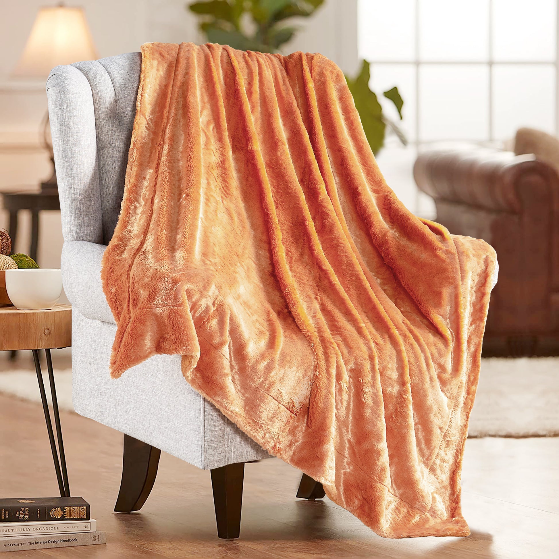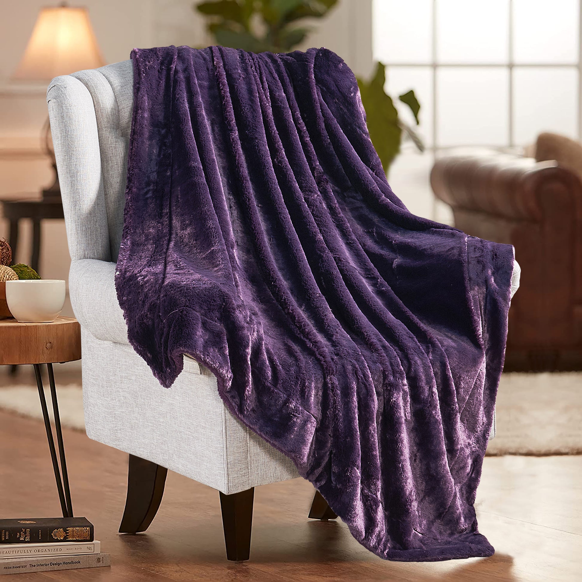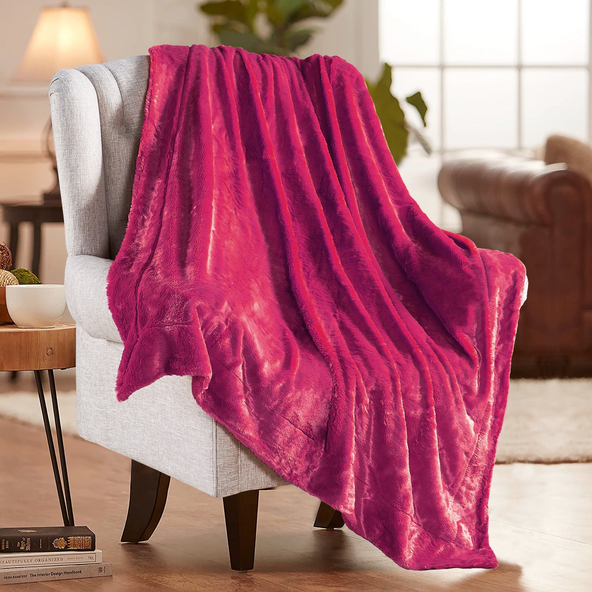 Plain faux fur throw blankets may have a plain name, yet they are anything but. Top layer features ultra-soft, fluffy faux fur that will make you feel you are caressing real animal fur. The back has mini Microfiber Polyester Sherpa that keeps you fantastically warm and cozy. Toss one of these lovelies at the foot of a bed, back of a sofa or chair for added color and texture. Size: 50'' x 60'' & 60'' x 80''
