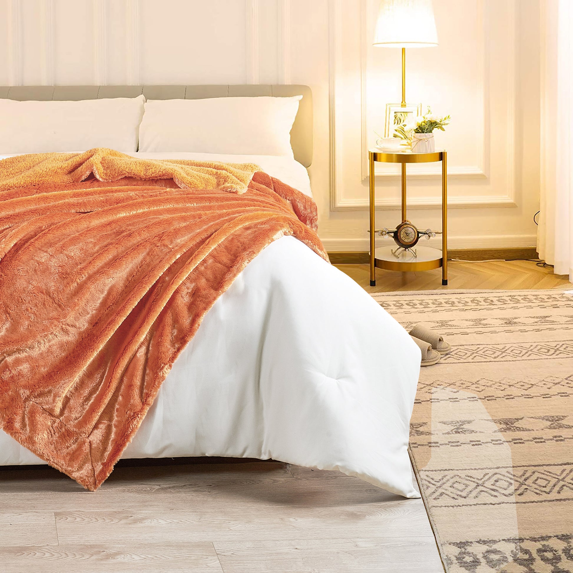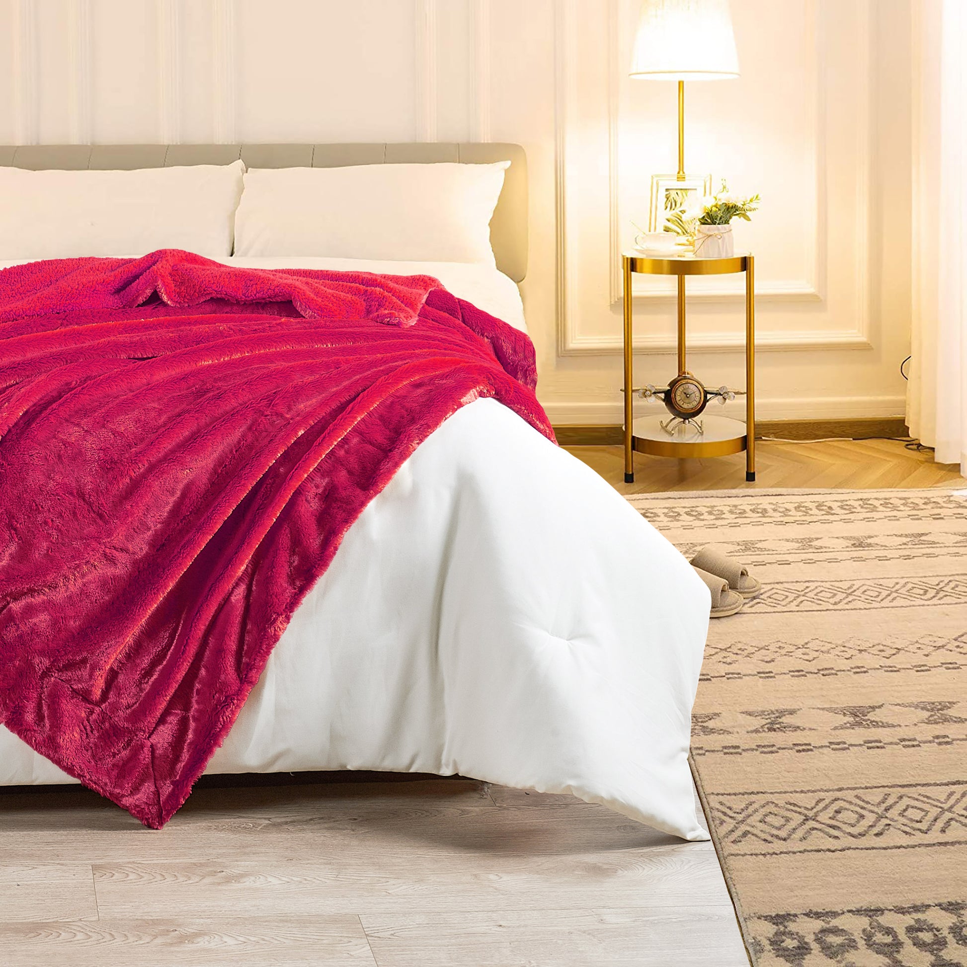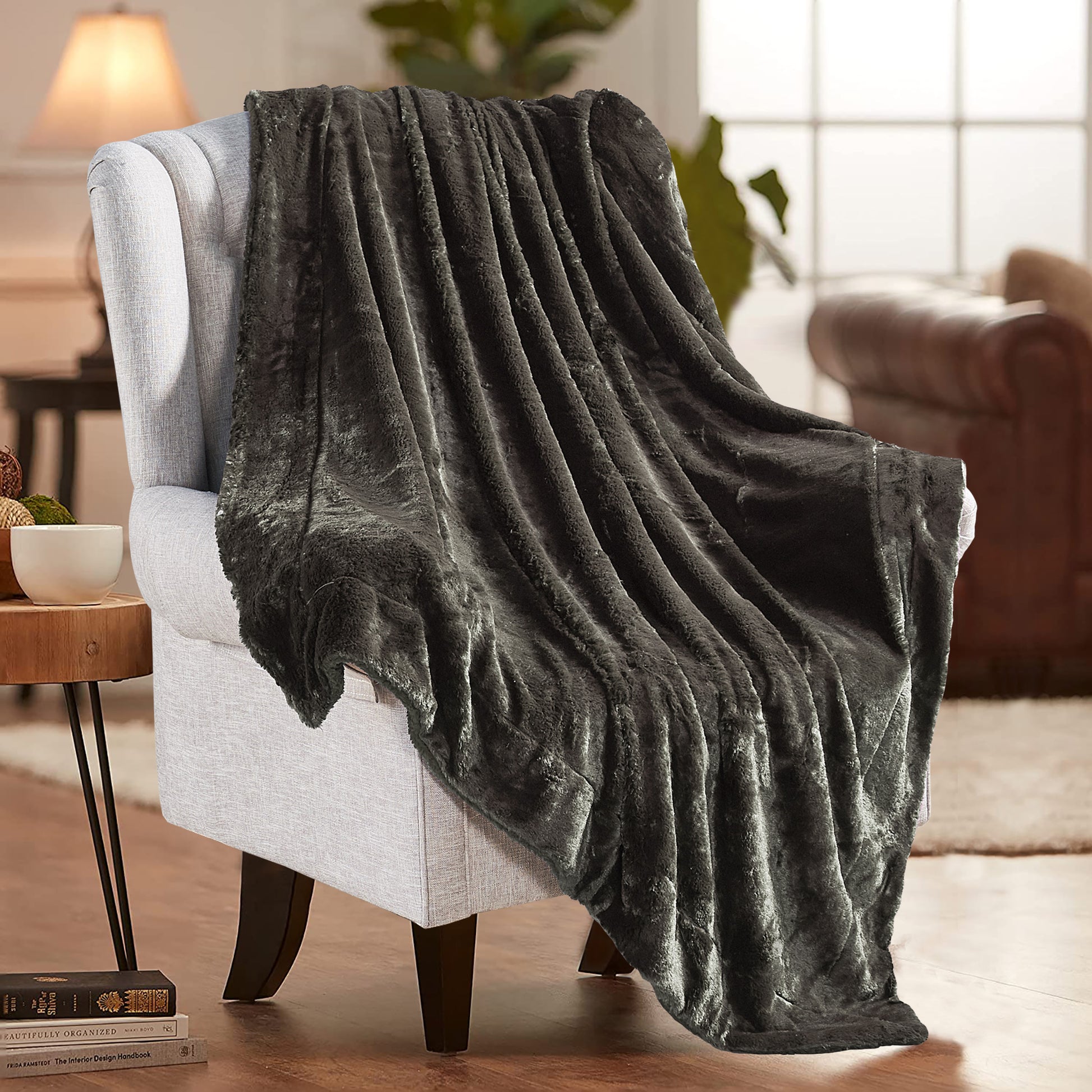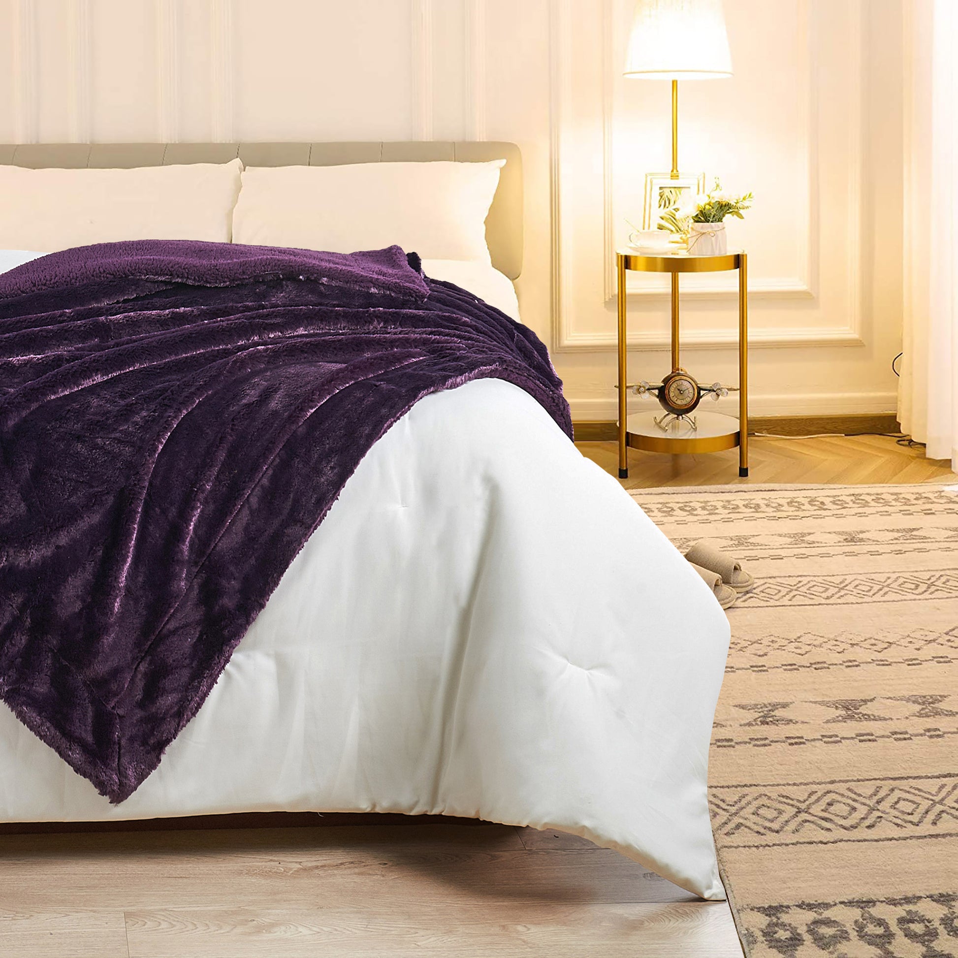 Plain faux fur throw blankets may have a plain name, yet they are anything but. Top layer features ultra-soft, fluffy faux fur that will make you feel you are caressing real animal fur. The back has mini Microfiber Polyester Sherpa that keeps you fantastically warm and cozy. Toss one of these lovelies at the foot of a bed, back of a sofa or chair for added color and texture. Size: 50'' x 60'' & 60'' x 80''